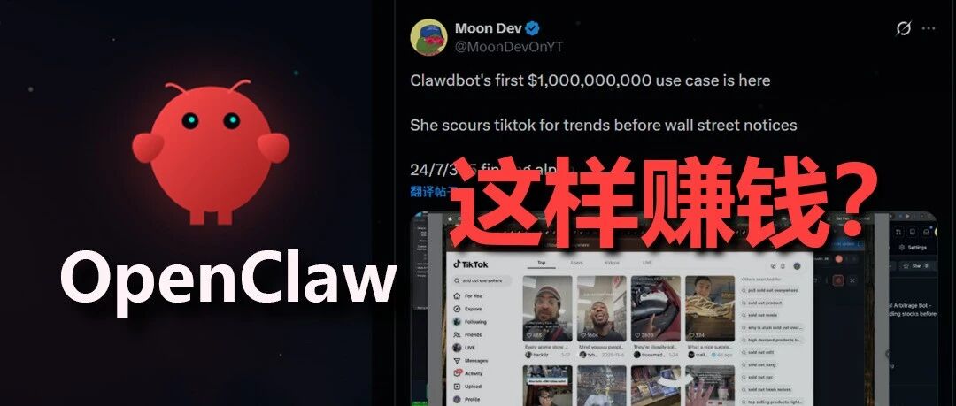 一句话概述就是:用 OpenClaw 机器人,24 小时监测 TikTok 热门趋势,提前发现"社交套利"机会,能比华尔街更早发现投资趋势。