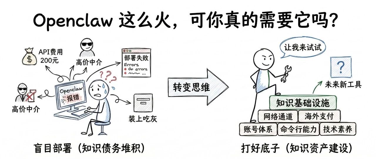 当下真正该做的,不是想尽办法把 Openclaw 装上,而是开始一项一项地减少自己的知识债务。