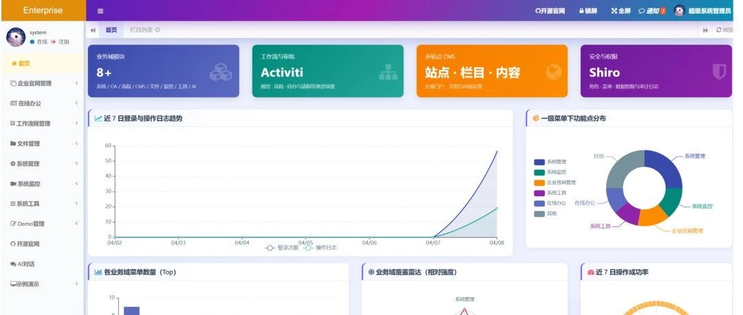 该开源项目(qiye-website)聚焦企业级应用开发痛点,提供以下核心能力: